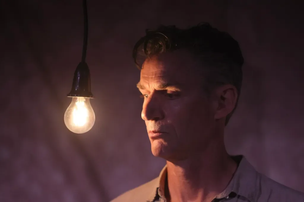 Jeremy Allen’s set is minimal yet symbolically rich with a curved timber floor, fire pits glowing beneath the stage, a functioning water well, and sparse natural elements, all of which elevate the rural Australian landscape. The use of shifting props allows for seamless transitions between locations without interrupting the play’s momentum. Lighting (Trent Suidgeest) and sound (Clemence Williams) are minimal but balanced, enhancing the dynamic tensions and the locational environment.